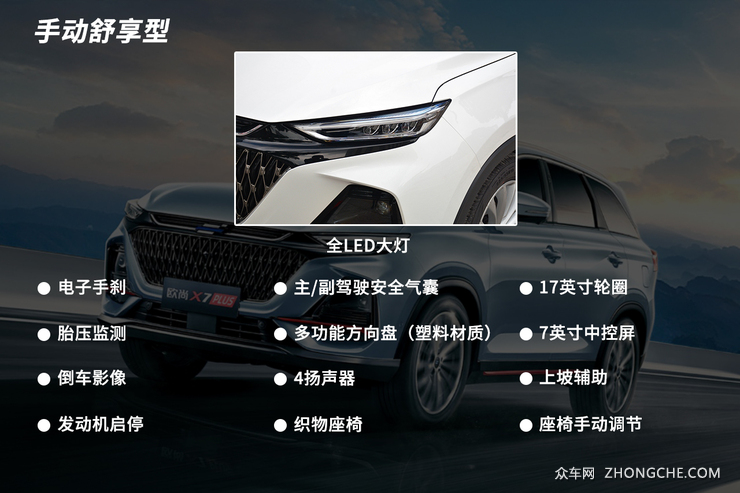 算上刚上市不久的蓝鲸红版车型,欧尚X7 PLUS目前在售的车型达到了10款之多。其中手动挡就有3款车型,而手动舒享型则是全系最入门的版本。