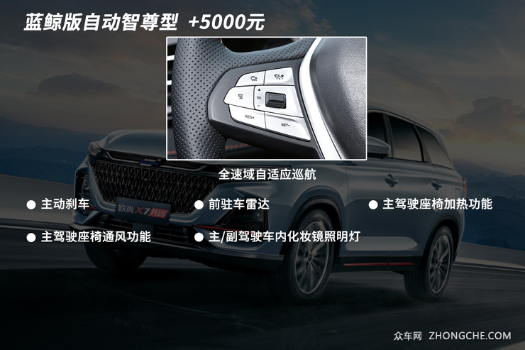 蓝鲸版自动智尊型相比上一款贵了5000元,配置增加了主动刹车、前驻车雷达、全速域自适应巡航、主/副驾驶化妆镜照明灯以及主驾座椅通风/加热,均是日常比较实用的配置,贵5000元还是比较划算的。推荐指数:★★★★