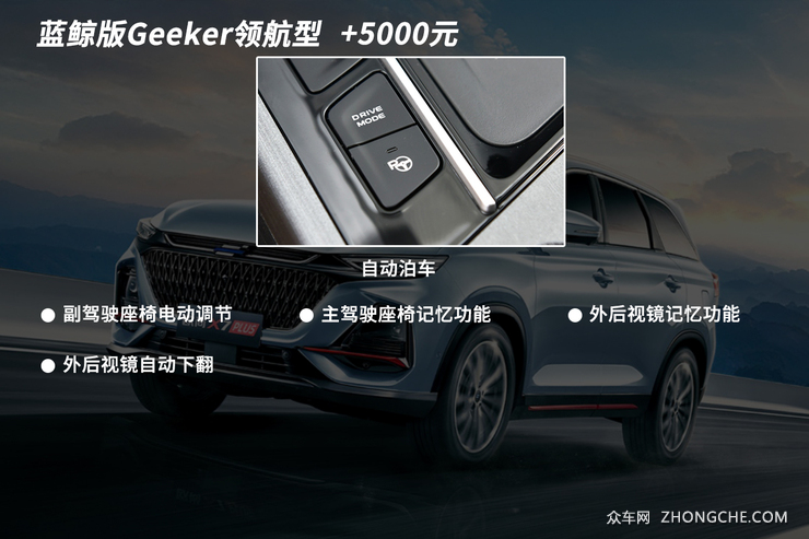 蓝鲸版Geeker领航型是全系最顶配,相比蓝鲸红版贵了5000元,配置上增加了自动泊车、副驾驶座椅电动调节、主驾驶座椅记忆功能、外后视镜记忆以及外后视镜自动下翻,可以说将配置做到了极致,适合注重用车体验且预算充足的消费者。推荐指数:★★★